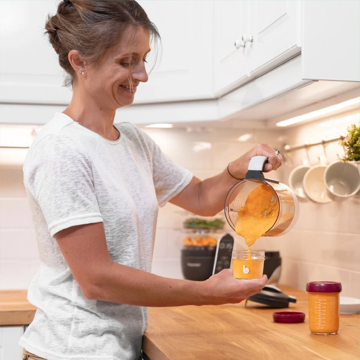 Met de glazen Babybols kunt u de maaltijden van uw baby gezond en eenvoudig bewaren. Waarom kiezen voor glazen bewaarpotjes? Glas is ideaal om voedsel in te bewaren. Het is een natuurlijk, duurzaam, ecologisch, neutraal en sterk materiaal. De glazen Babybols bewaren langdurig de smaak van voedsel. U hebt zelf puree of compote gemaakt voor uw kind. Die wilt u natuurlijk zo goed mogelijk bewaren. Deze bewaarpotjes hebben een inhoud van 240 ml. De silicone dichting sluit het schroefdeksel hermetisch af. De potjes hebben een graadverdeling in ml en oz en het deksel heeft een grote beschrijfbare ruimte. Zo kunt u bijvoorbeeld het bewaarde gerecht en de bereidingsdatum gemakkelijk noteren. De Babybols zijn stapelbaar zodat u ze gemakkelijker in de kast, de koelkast of de diepvriezer kunt plaatsen. De Babybols zijn gemaakt van glas en zijn daardoor hittebestendig. U kunt ze opwarmen in de magnetron (met de ontdooimodus als ze diepgevroren zijn), au bain-marie of in een flessenwarmer. Ze kunnen handig in de vaatwasser en kunnen ook gesteriliseerd worden. Deze bewaarpotjes zijn bijzonder duurzaam. Ze krijgen geen vlekken in contact met voedsel (zoals wortel of tomaat) en zijn recyclebaar.