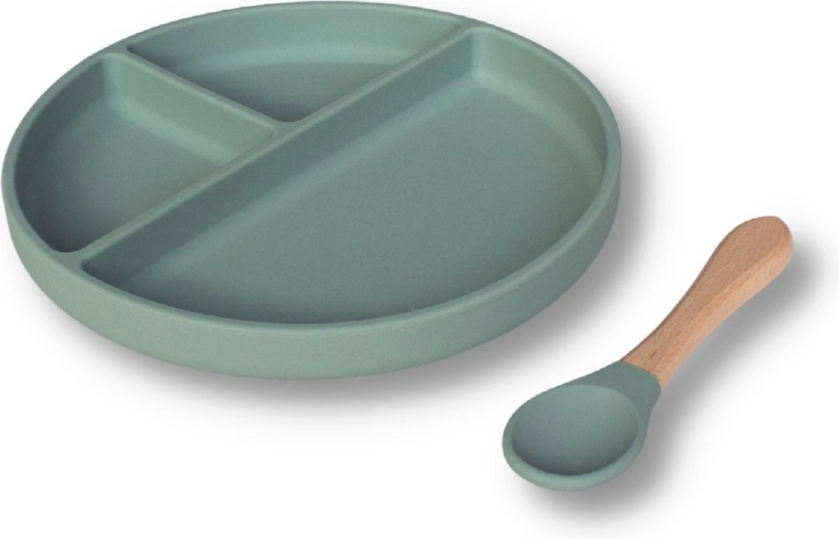 Dit Kinderbord met zuignap, lepel en handige vakjes helpt daar goed bij.