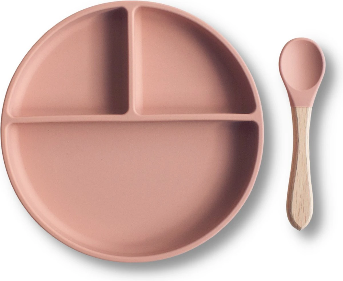 Dit Kinderbord met zuignap, lepel en handige vakjes helpt daar goed bij.