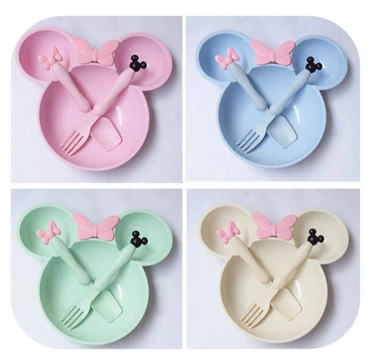 Bestaande uit 1 bordje met 3 vakjes, een vork en lepeltje
