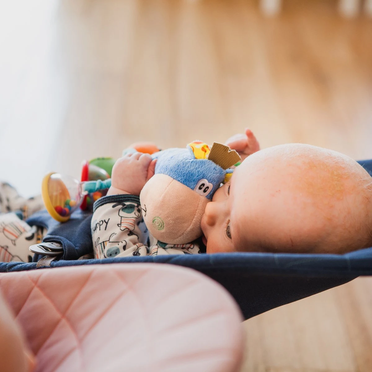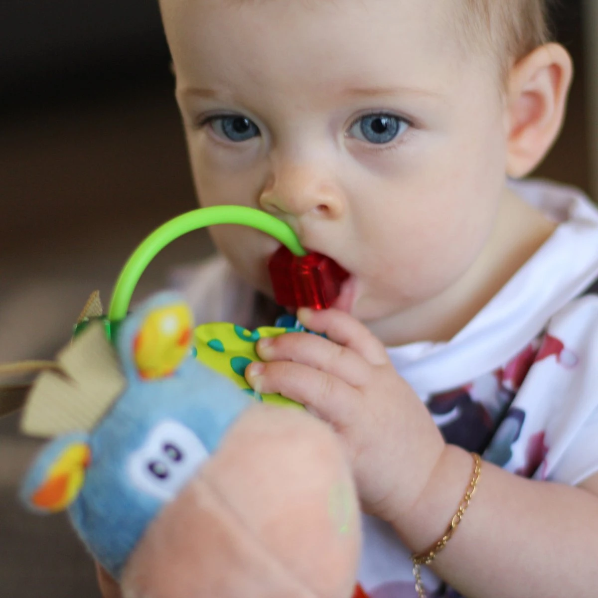 Clip, Clop, Clip Clop! Een van onze meest geliefde karakters, Clip Clop, is volgeladen met allerlei functies in deze interactieve rammelaar. Gevuld met veel verschillende activiteiten zoals ratelen, klik-klak kralen, een kiekeboe zadel, kreukelende functies en nog veel meer! Dit speeltje zal de baby uren vermaken terwijl het ook nog de fijne motoriek en de auditieve zintuigen stimuleert.