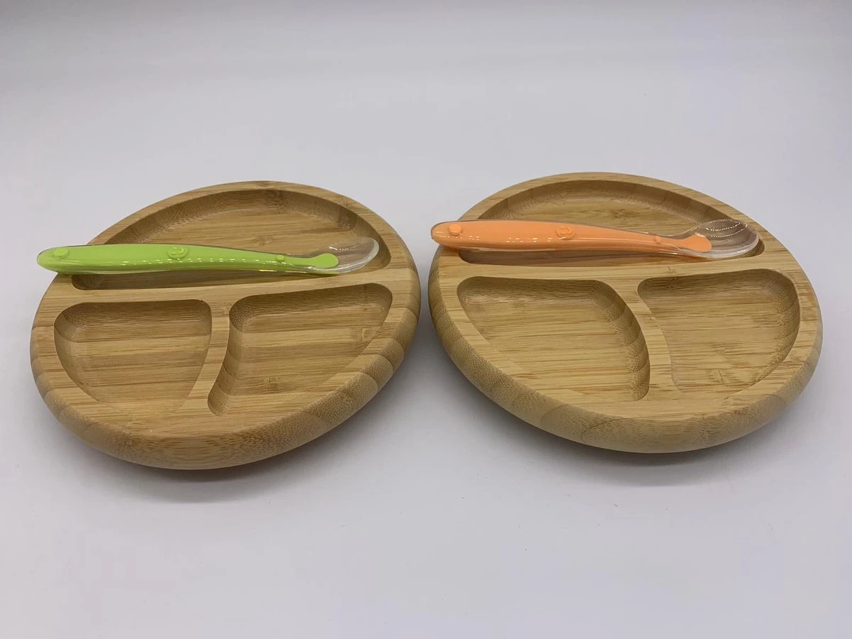 - 2x Bamboe kinderbord met vakjes, met afneembare siliconen zuignap