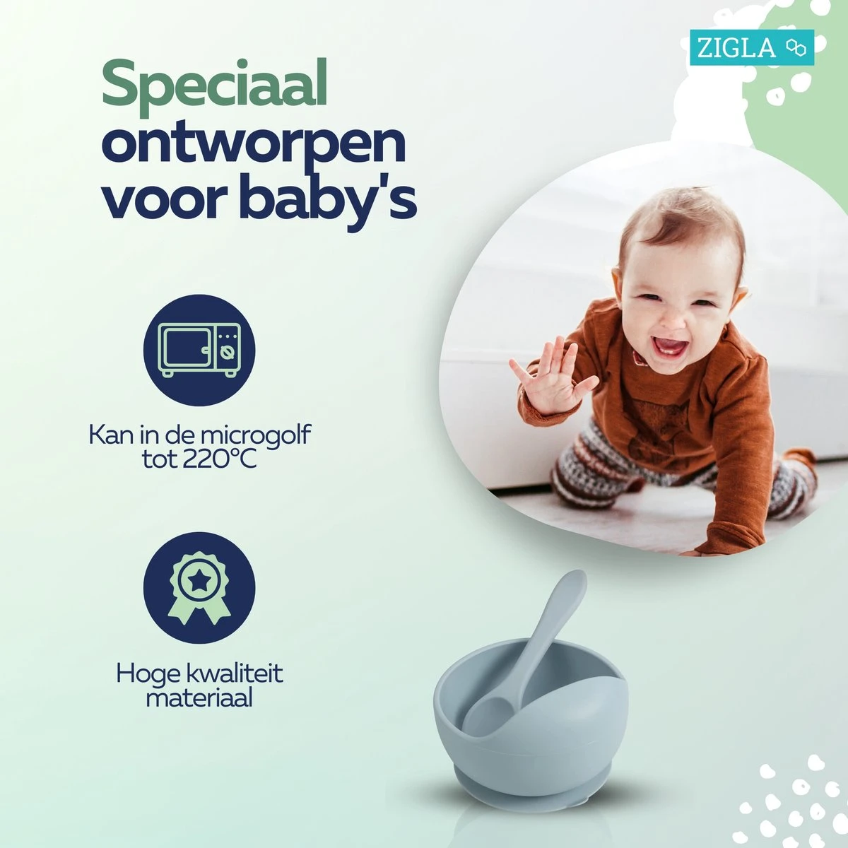 Het kan zijn dat jouw kleine grijpgrage handjes heeft en het hierdoor bij vrijwel elke maaltijd al gauw een kliederboel is. Om dit te voorkomen hebben wij het Zigla knoeivrije bord ontworpen met hierbij een bijpassende lepel om te oefenen. Zo kan jij en jouw kleine genieten van een rustige maaltijd waarbij het bord stevig op zijn plaats blijft.