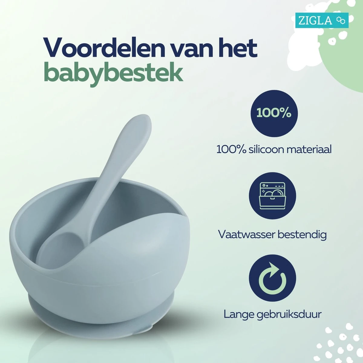 Bestel vandaag nog het Zigla siliconen baby bestek en laat jou én je kleine genieten van een knoeivrije maaltijd!